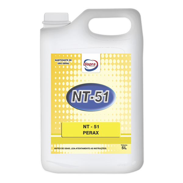 Preparo da solução: dilua 30 ml de NT - 51 PERAX em 10 litros (3 ml/l) de água em temperatura ambiente;