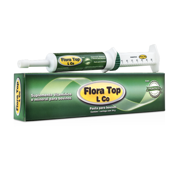 FLORA TOP é um premix mineral vitamínico contendo microminerais, vitaminas e probióticos - bactérias indicado para bovinos.