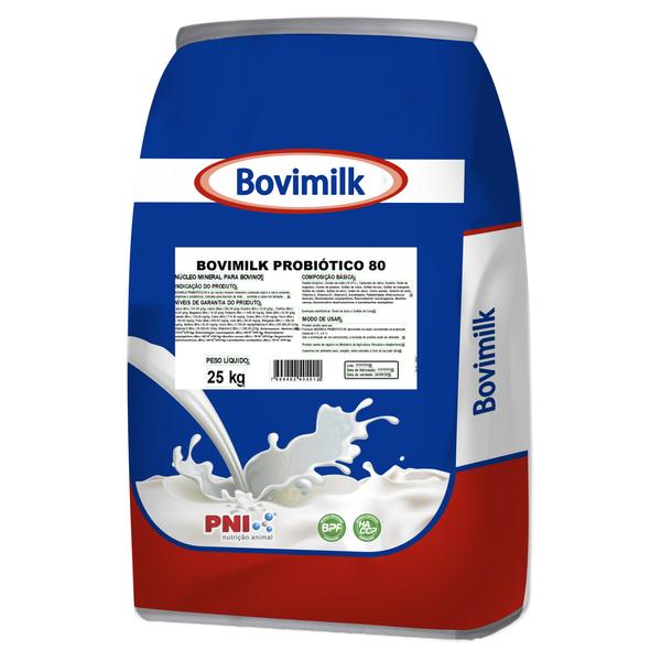 Produto pronto para uso. Fornecer BOVIMILK PROBIÓTICO 80 adicionado na ração concentrada na proporção média de 3% a 5%.