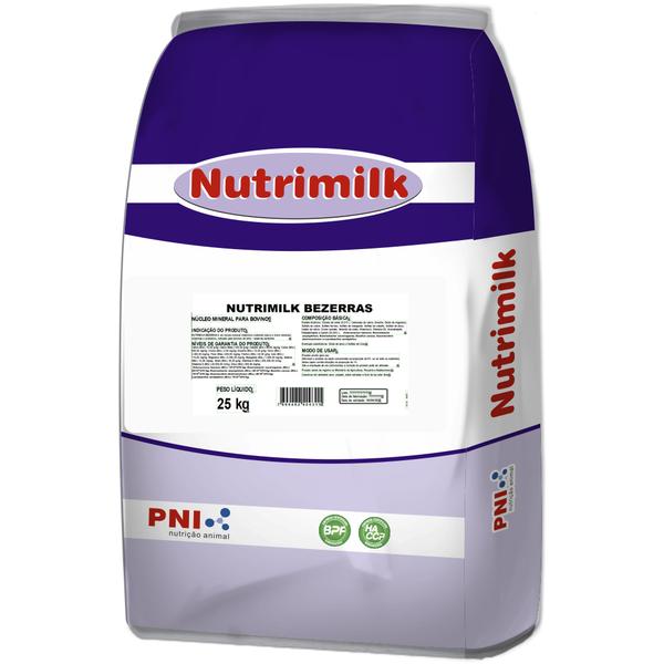 Fornecer NUTRIMILK BEZERRAS adicionado na ração concentrada na proporção de 5 % ou no leite ou substituto lácteo (após correta diluição) na proporção de 1%.